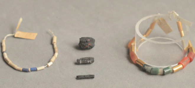 Στο εσωτερικό του τάφου, που ανήκε σε έναν έφηβο, οι χάντρες σιδήρου ήταν αρμαθιές μαζί σε ένα περιδέραιο μαζί με άλλα εξωτικά υλικά, όπως χρυσό και πολύτιμους λίθους. Πρόωρη τεστ της σύνθεσης των σφαιριδίων »αποκάλυψε περιέργως υψηλές συγκεντρώσεις νικελίου, ένα αποκαλυπτικό στοιχείο υπογραφή για μετεωρίτες σιδήρου.