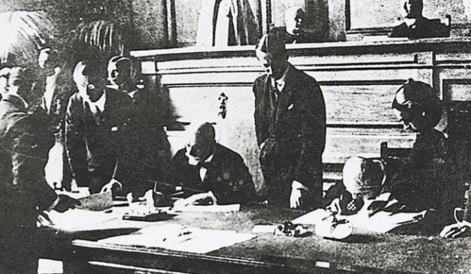 Ο Ελευθέριος Βενιζέλος υπογράφει τη Συνθήκη της Λωζάνης το μεσημέρι της 24ης Ιουλίου 1923